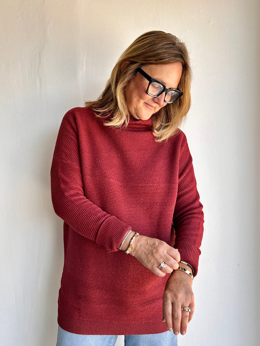 MULTI STRIPE TEXTURED BOAT NECK SWEATER