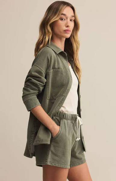 All Day Knit Denim Long Sleeve Oversized Shacket-Hunter Green